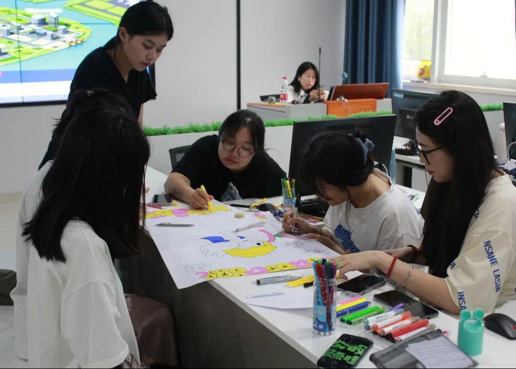 动员大会结束后,在实训老师和助教同学的帮助下,同学们开始通过发放的办公用品为自己的企业开始设计展现公司文化的企业logo和创意工牌。各位同学齐心协力,为即将展开的Logo设计大赛积极准备着。