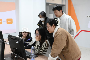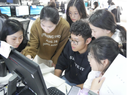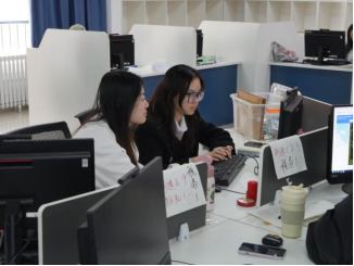 助教向银行分发信用借款合同,老师则对填写合同的学生进行指导,解答他们在操作过程中遇到的疑问。