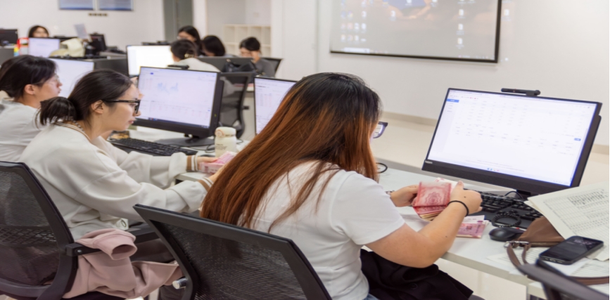 4点整,点钞集中练习正式开始,同时,下午的交易记录整理、报告撰写也同步进行。大家左手点钞、右手记笔记,忙得不亦乐乎。直到4点40分打卡下班,不少同学还在互相交流:“今天点钞速度又快了5秒!”“我的投资计划书终于收尾了!”